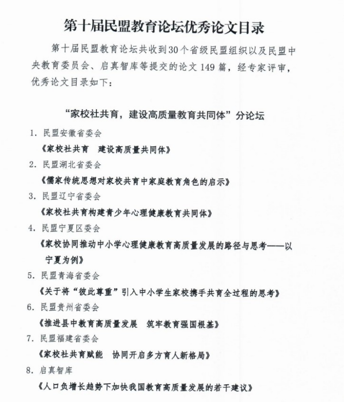 盟员王文修老师撰写的文章《儒家传统思想对家校共育中家庭教育角色的启示》在第十届民盟教育论坛上获评为优秀论文,并作为优秀论文作者代表受邀参加盟中央在黑龙江举行的第十届民盟教育论坛;盟员刘学利老师主持的项目《新中国成立以来中小学教科书建构人民形象研究》获批全国教育科学“十四五”2023年度国家一般项目等。