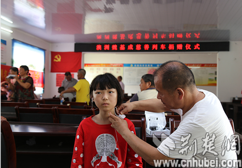 “听得见吗?声音大还是小?助听器电流声大就调小声音,不用的时候把开关关上……”在云南省昭通镇雄县特殊教育学校,饶坚耐心地给受助学生测试验配助听器。受助学生鲁玉琴验配了助听器后,喊出第一声“爸爸”时,她的父亲感动得哭了。“我女儿3个月大的时候生病,导致后来一直不会说话,今天第一次听见她喊我爸爸,真的很激动也很高兴……”鲁玉琴的父亲一边哽咽着说,一边抹去眼角的泪。
